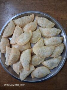 Among all the recipes I know, Karanji or Ghoogra holds a very special place in my heart. It is my mother’s signature recipe, filled with memories, warmth, and love. The delicate crust, the perfectly balanced sweet filling, and the traditional method she taught me have made this dish a family treasure. Through this, I hope to keep my mother’s legacy alive and allow others to taste the magic she passed down to me.